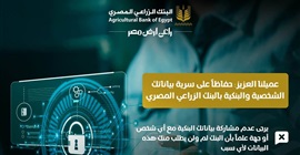 حذر البنك الزراعي المصري عملائه من التعامل مع أي رسائل أو مكالمات أو فتح روابط مجهولة المصدر تطلب البيانات الشخصية أو البنكية للعملاء.